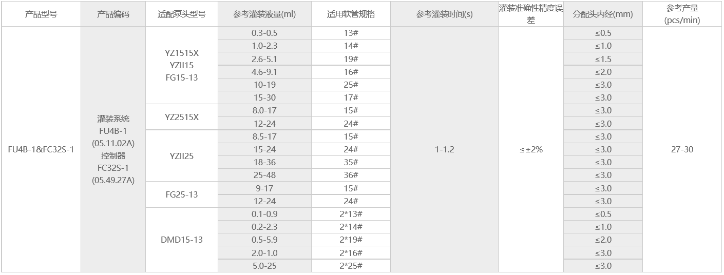 通道數(shù)量 4(單組灌裝系統(tǒng)FU4B-1)~32(8組灌裝系統(tǒng)FU4B-1)