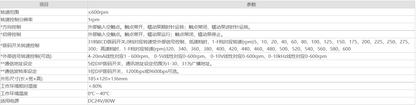 說明:*項(xiàng)目為撥碼開關(guān)結(jié)合外部信號(hào)控制方式所特有