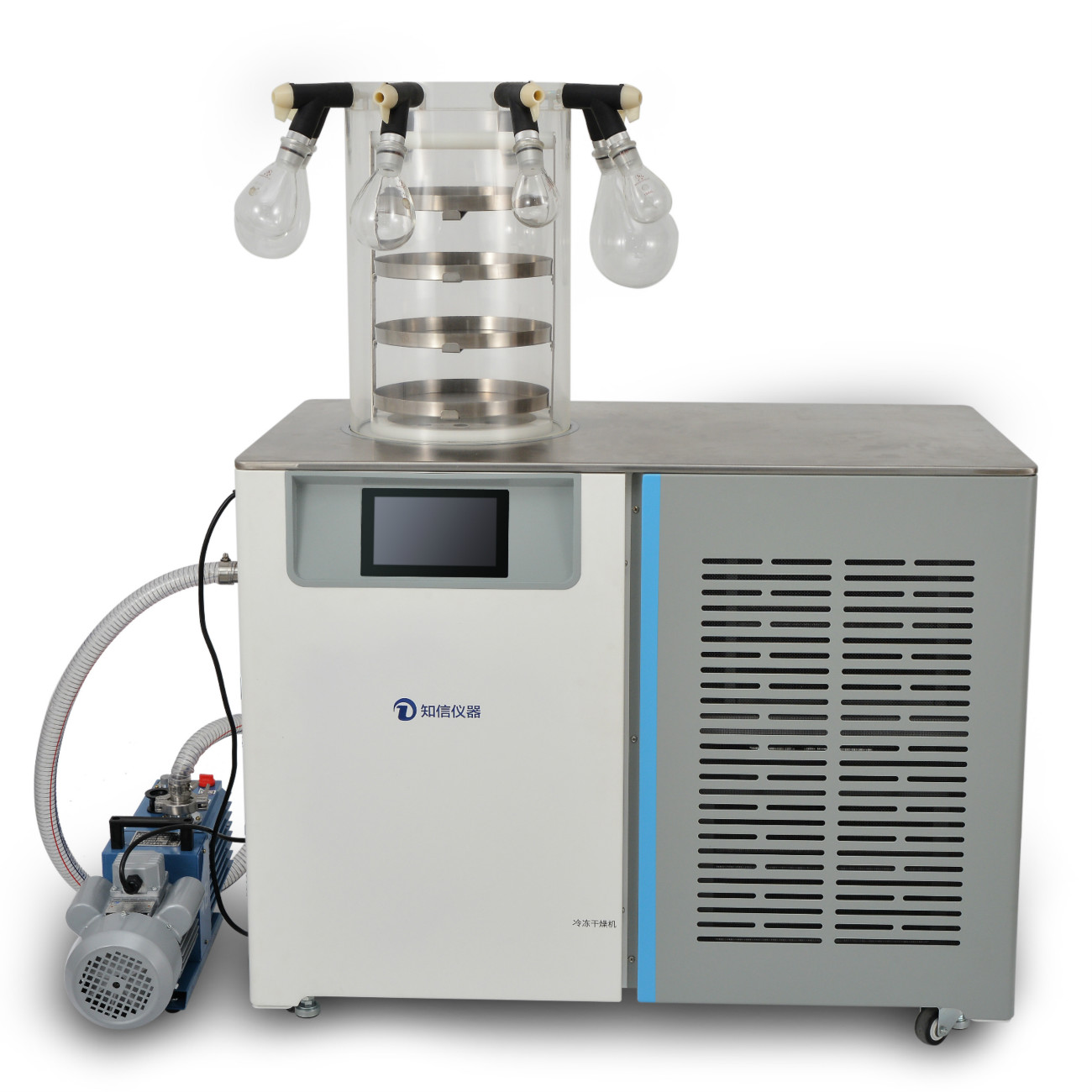 同時(shí)最多掛瓶為8個(gè),分為以下4種規(guī)格:500ml、250ml、100ml、50ml,可根據(jù)需要自由組合, 凍干過(guò)程中可隨時(shí)更換凍干瓶, 同時(shí)凍