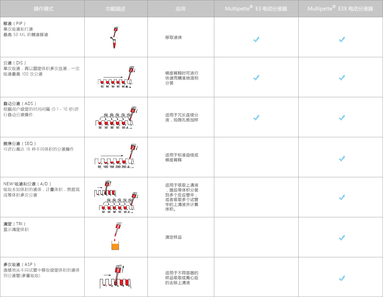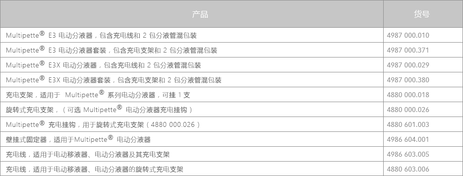 Multipette? E3/E3x 電動分液器結(jié)合分液管,提供從 1 μL——50 mL 的分液范圍,特別適合于高粘度、易揮發(fā)、易起泡、高密度及危險性等問題溶液的精準移取及分裝。中文彩色界面、RFID 數(shù)據(jù)讀寫、睡眠模式、8 檔速度調(diào)節(jié)等功能提升您的使用體驗。