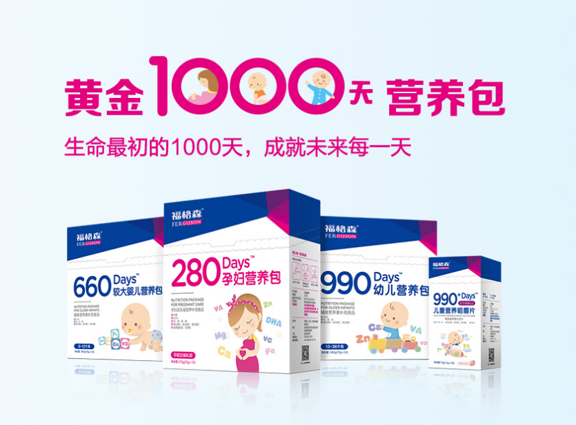今年10月,福格森舉辦新品發(fā)布會,推出“黃金1000天孕嬰營養(yǎng)包”系列新產(chǎn)品后立即受到了廣大消費(fèi)者的認(rèn)可,市場反響熱烈。福格森孕嬰營養(yǎng)包非常全面,包含有280days孕婦營養(yǎng)包、660days較大嬰兒營養(yǎng)包、990days幼兒營養(yǎng)包及990+days兒童咀嚼片,在寶寶黃金1000天內(nèi)根據(jù)人體的生長發(fā)育不同階段的不同需求精準(zhǔn)搭配核心配方。