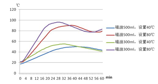 針對大龍儀器的此類產(chǎn)品,我們分別利用水和硅油作為被加熱介質(zhì),在同一溫度條件下,進行加熱實驗,所得實驗結(jié)果如圖2-4所示。